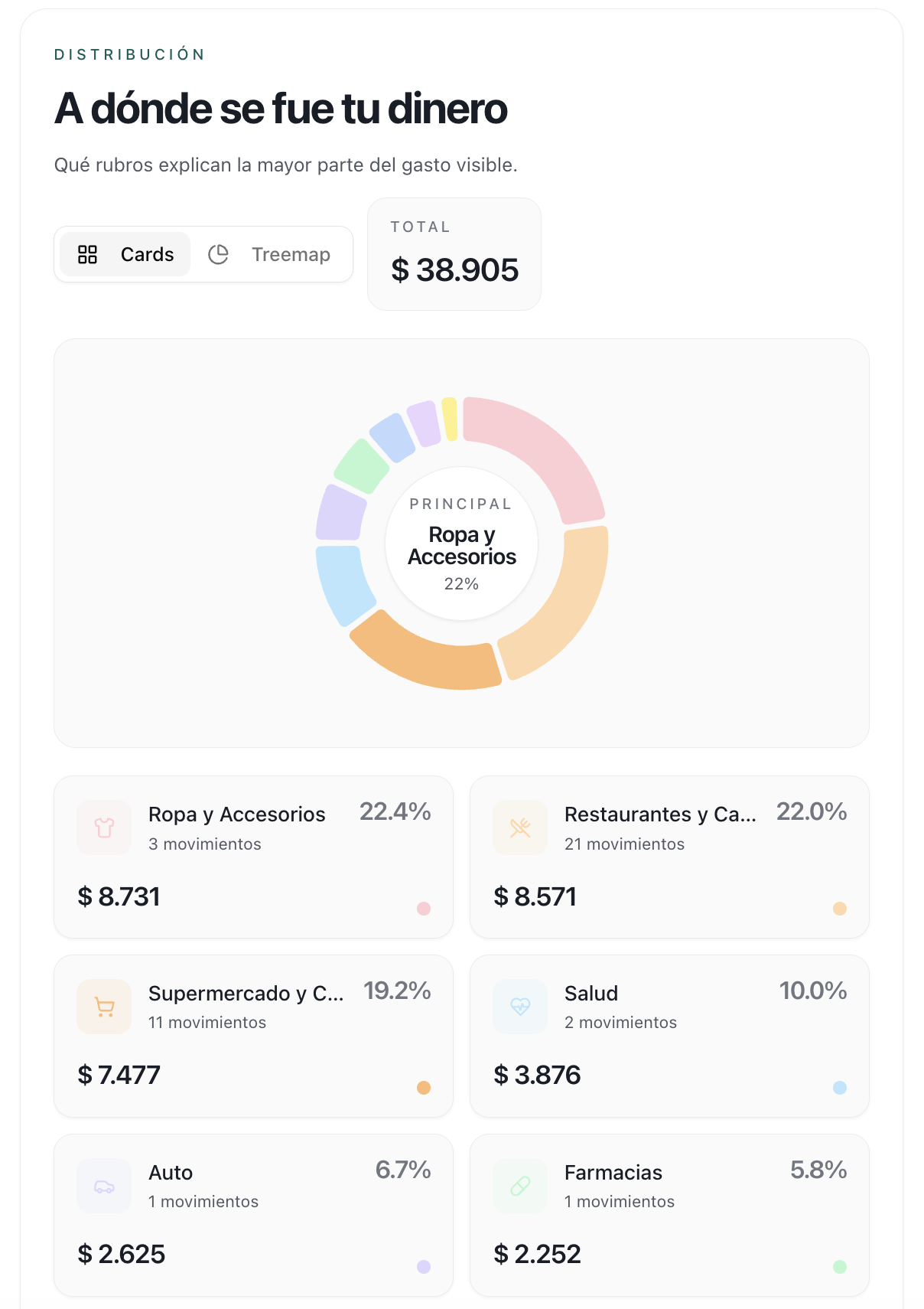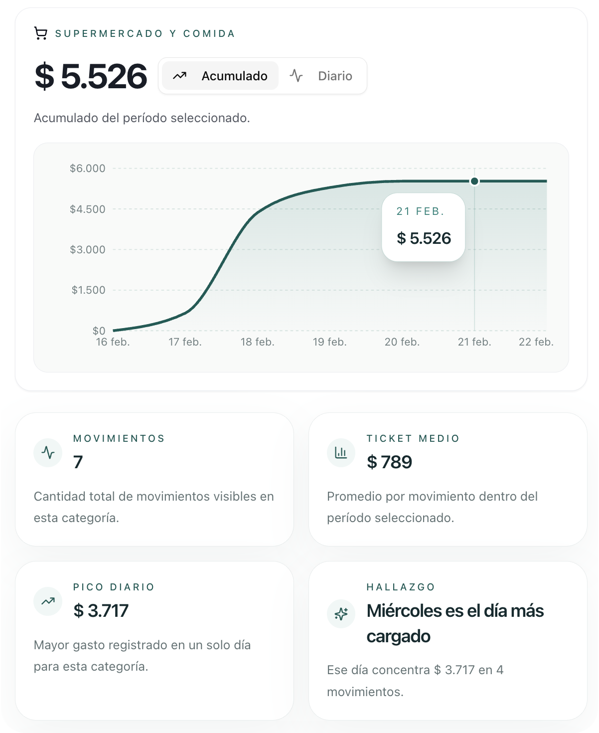 Por fin entiendo en qué gasto cada mes. Ya no necesito armar planillas manuales en Excel.