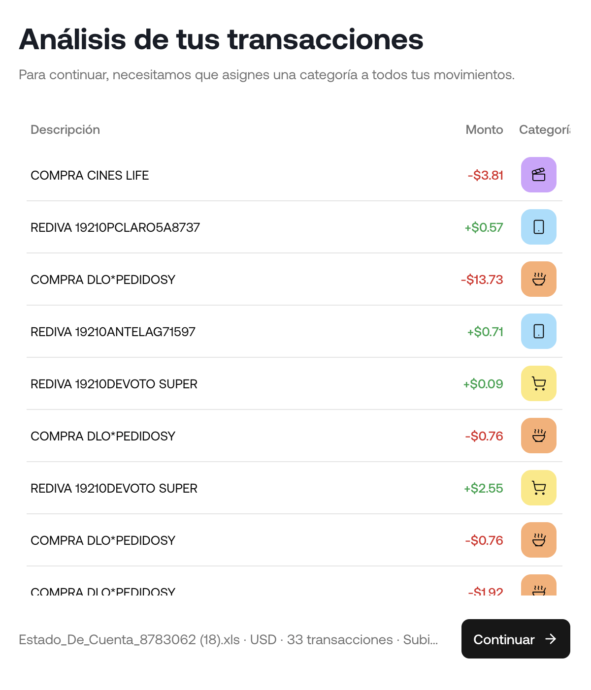 Subí el estado de cuenta de Itaú y en segundos tenía todo categorizado. Literalmente increíble.